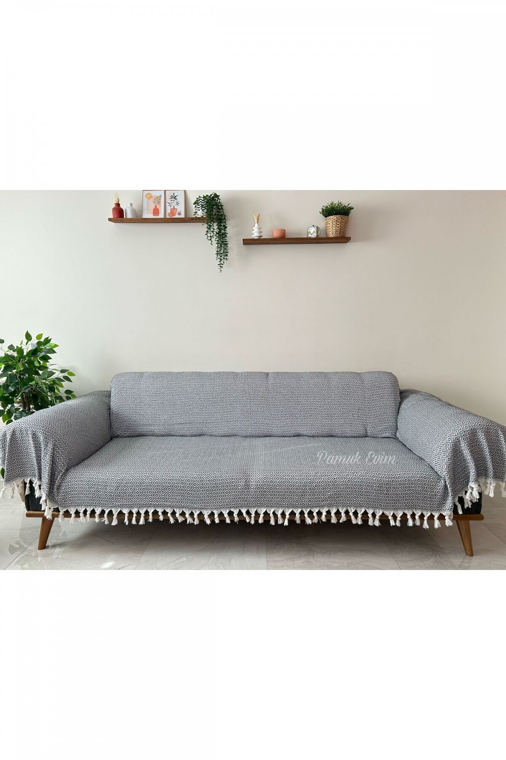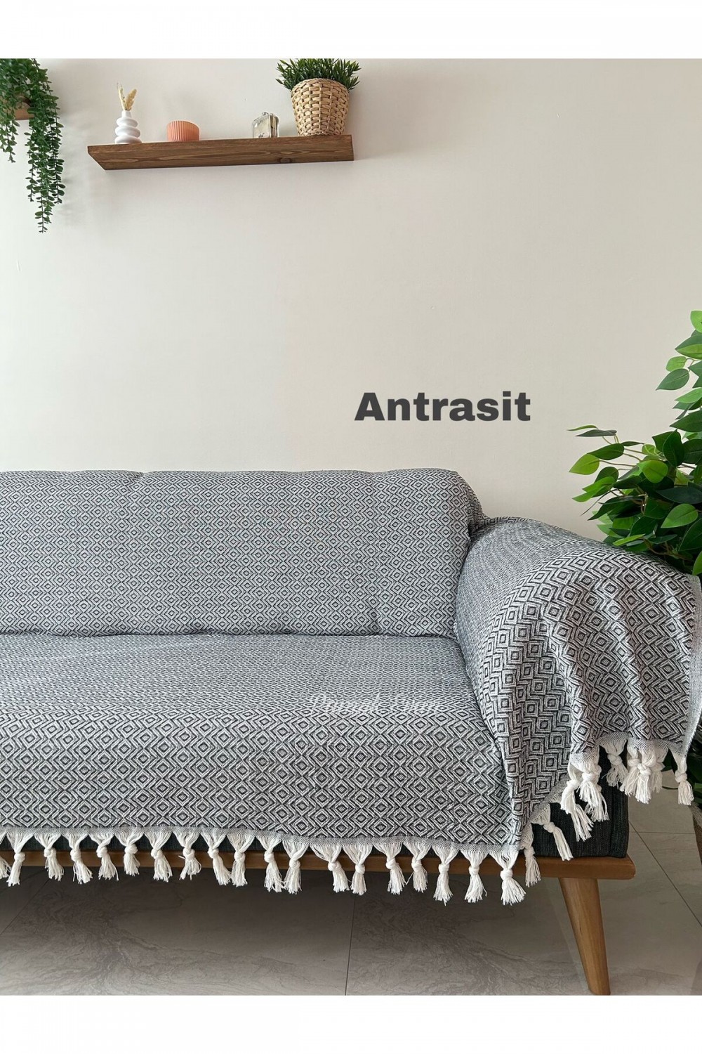 Buldan Işi Kollarını Örten Kanepe Çekyat Koltuk Örtüsü Büyük Boy Pamuk Dokuma 180 x 300 Antrasit