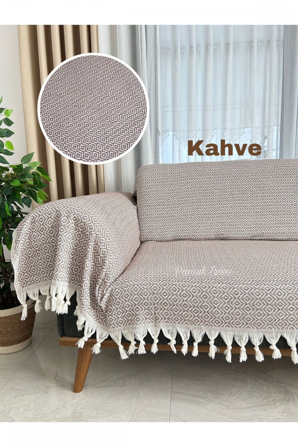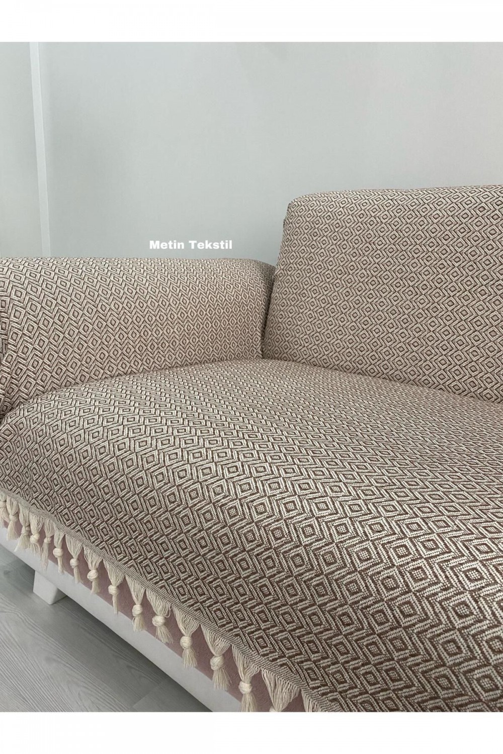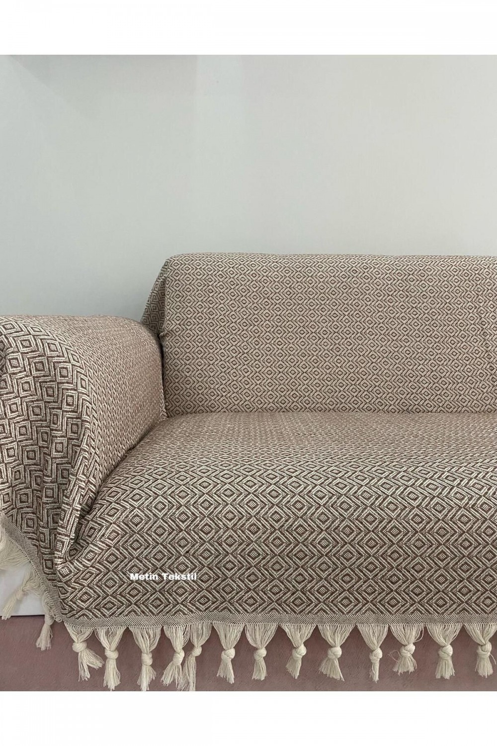 Buldan Işi Kollarını Örten Kanepe Çekyat Koltuk Örtüsü Büyük Boy Pamuk Dokuma 180 x 300 Kahve