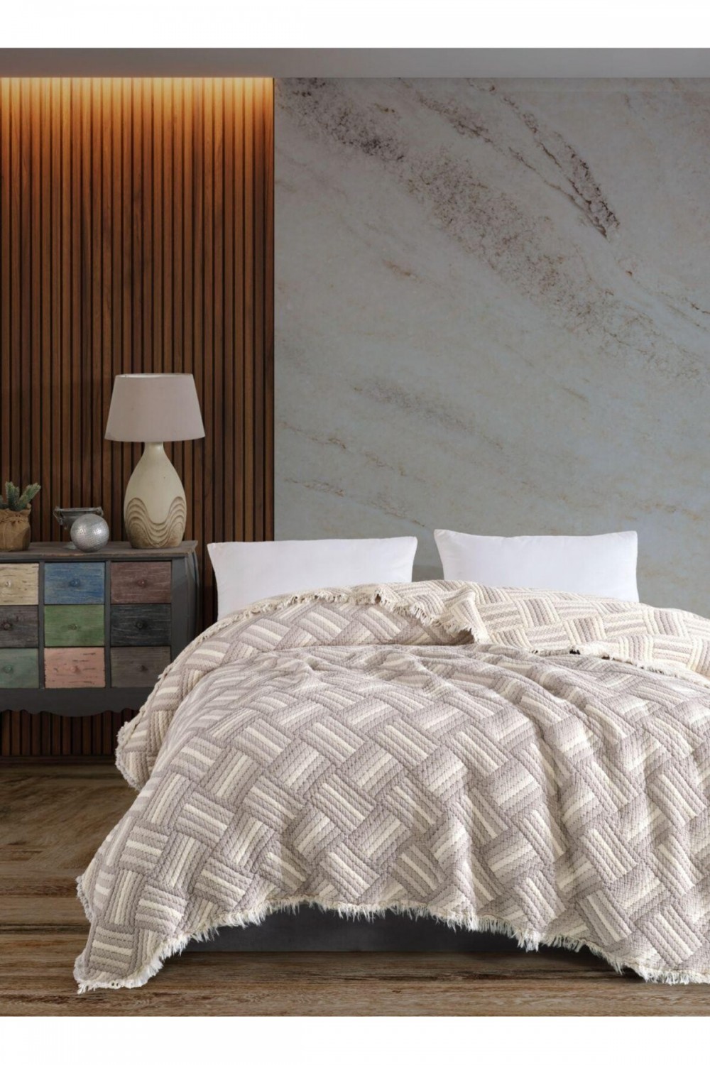 TERRY Müslin 8 Katlı Yatak Örtüsü&Pike - Toprak Bej - 230 x 250
