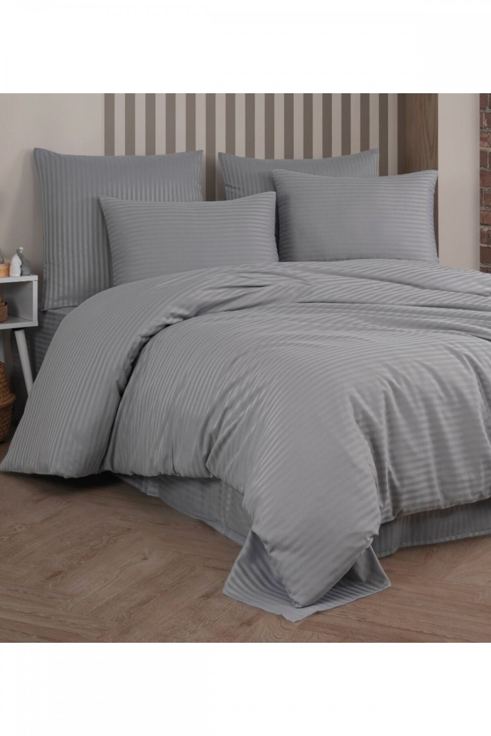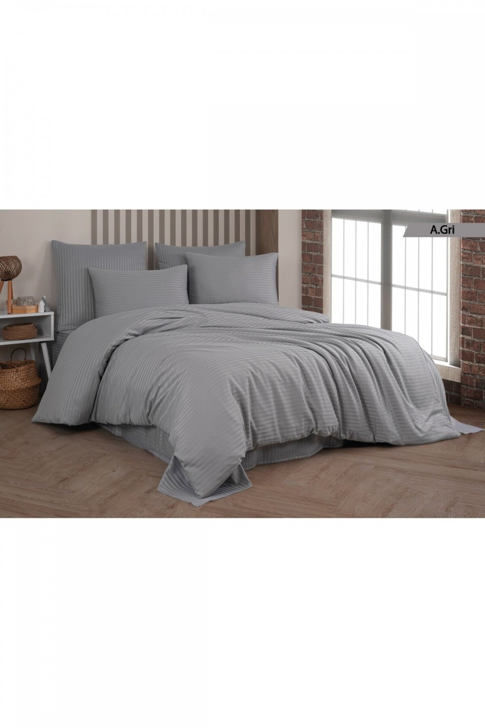 Pamuk Saten Çizgi Model Çift Kişilik Nevresim Seti - Gri