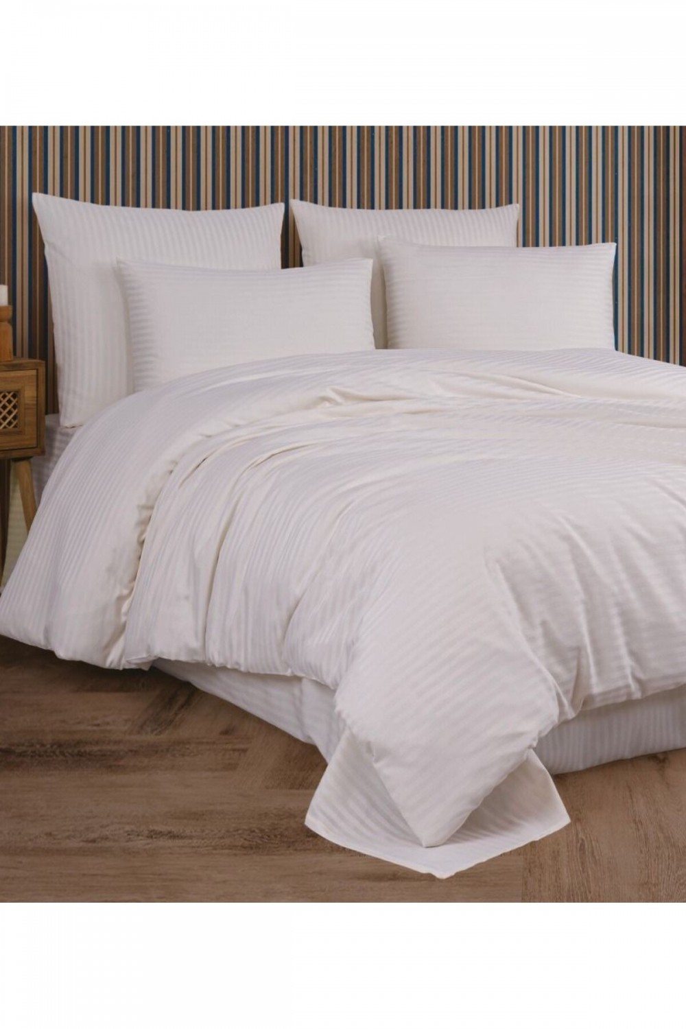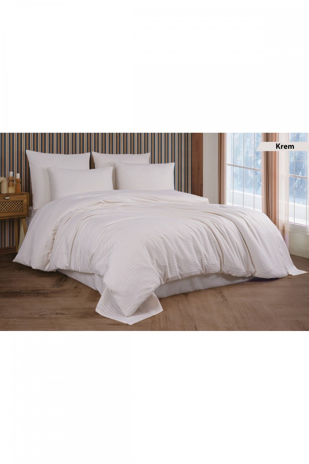 Pamuk Saten Çizgi Model Çift Kişilik Nevresim Seti - Krem