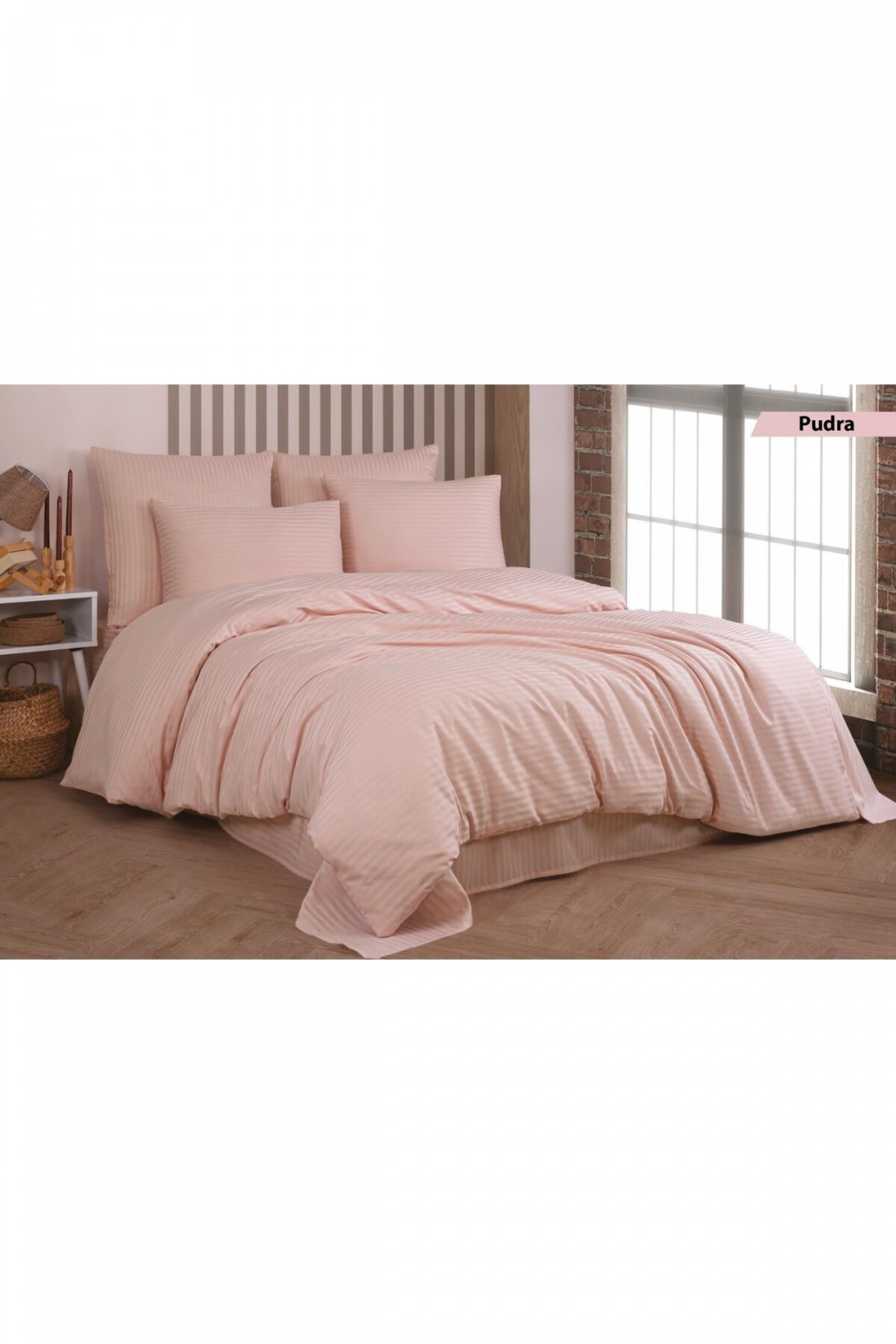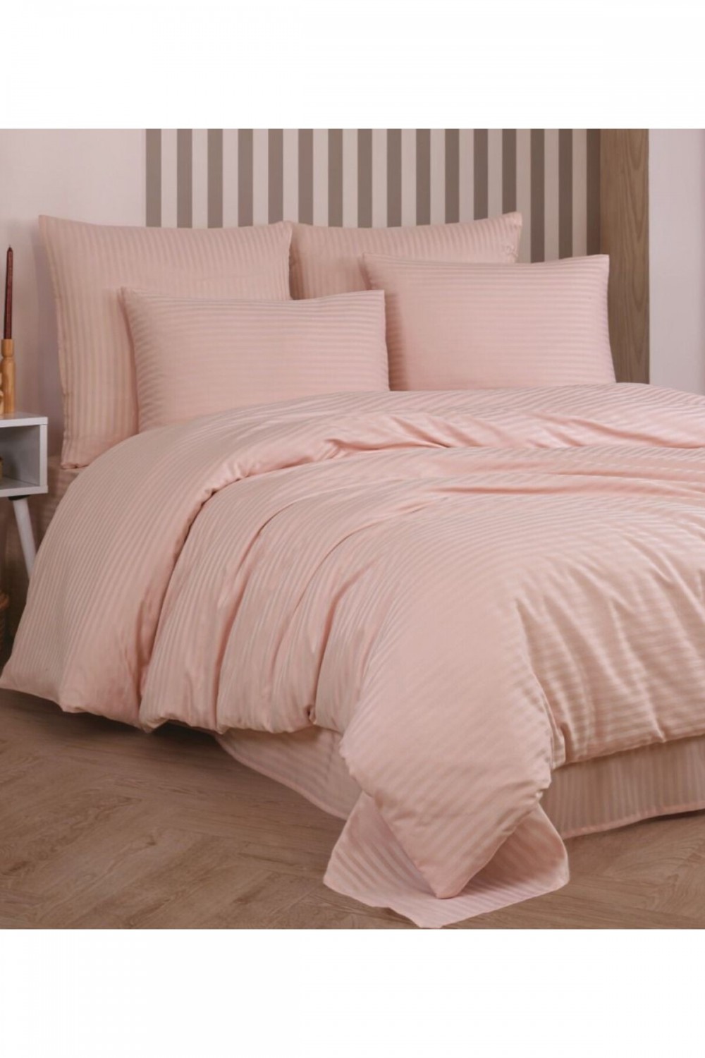 Pamuk Saten Çizgi Model Çift Kişilik Nevresim Seti - Pembe