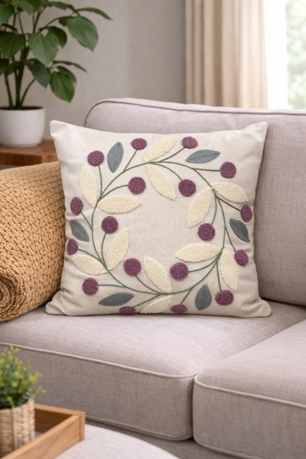 2’li Punch İşleme Dekoratif 43x43 Kırlent Kılıfı