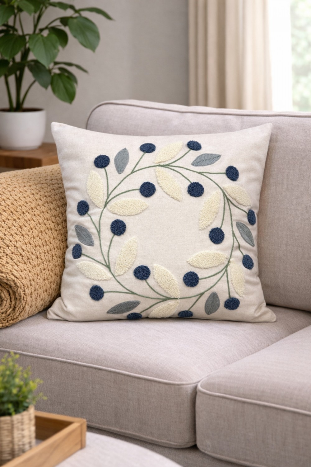 2’li Punch İşleme Dekoratif 43x43 Kırlent Kılıfı