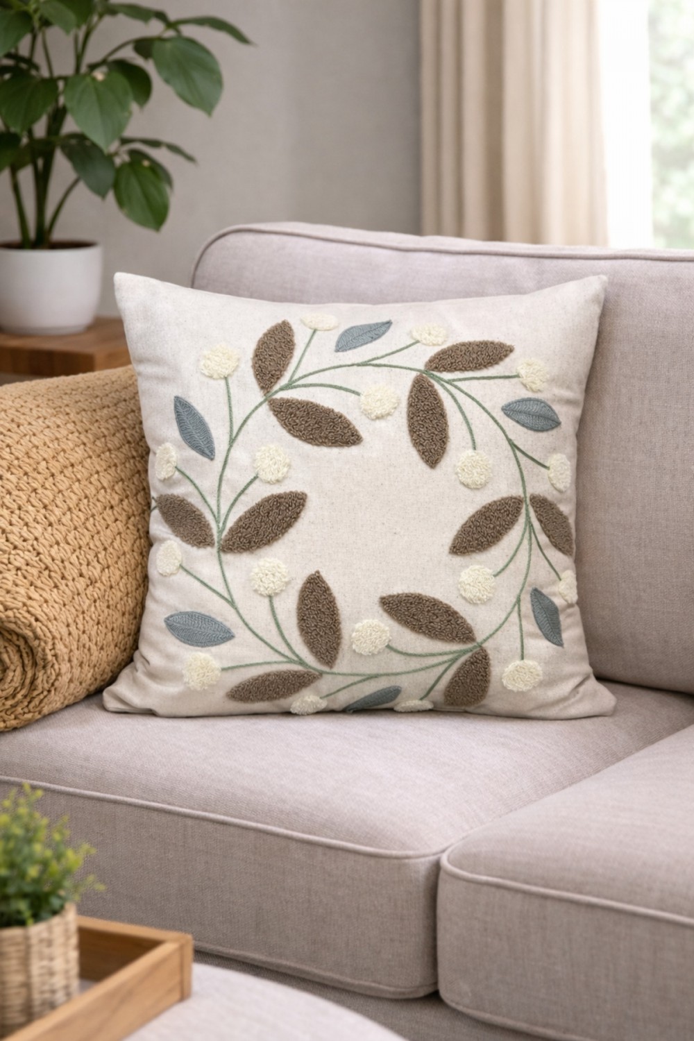 2’li Punch İşleme Dekoratif 43x43 Kırlent Kılıfı