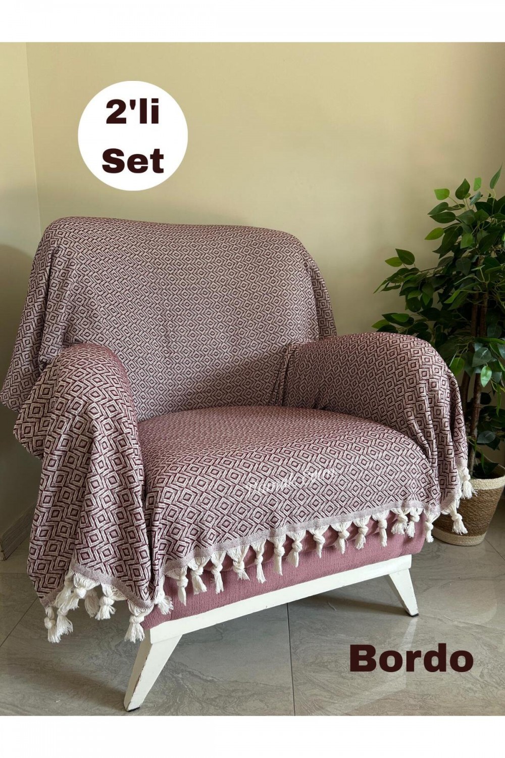 Buldan Berjer Uyumlu 2'li 170x145 Koltuk Örtüsü - Bordo