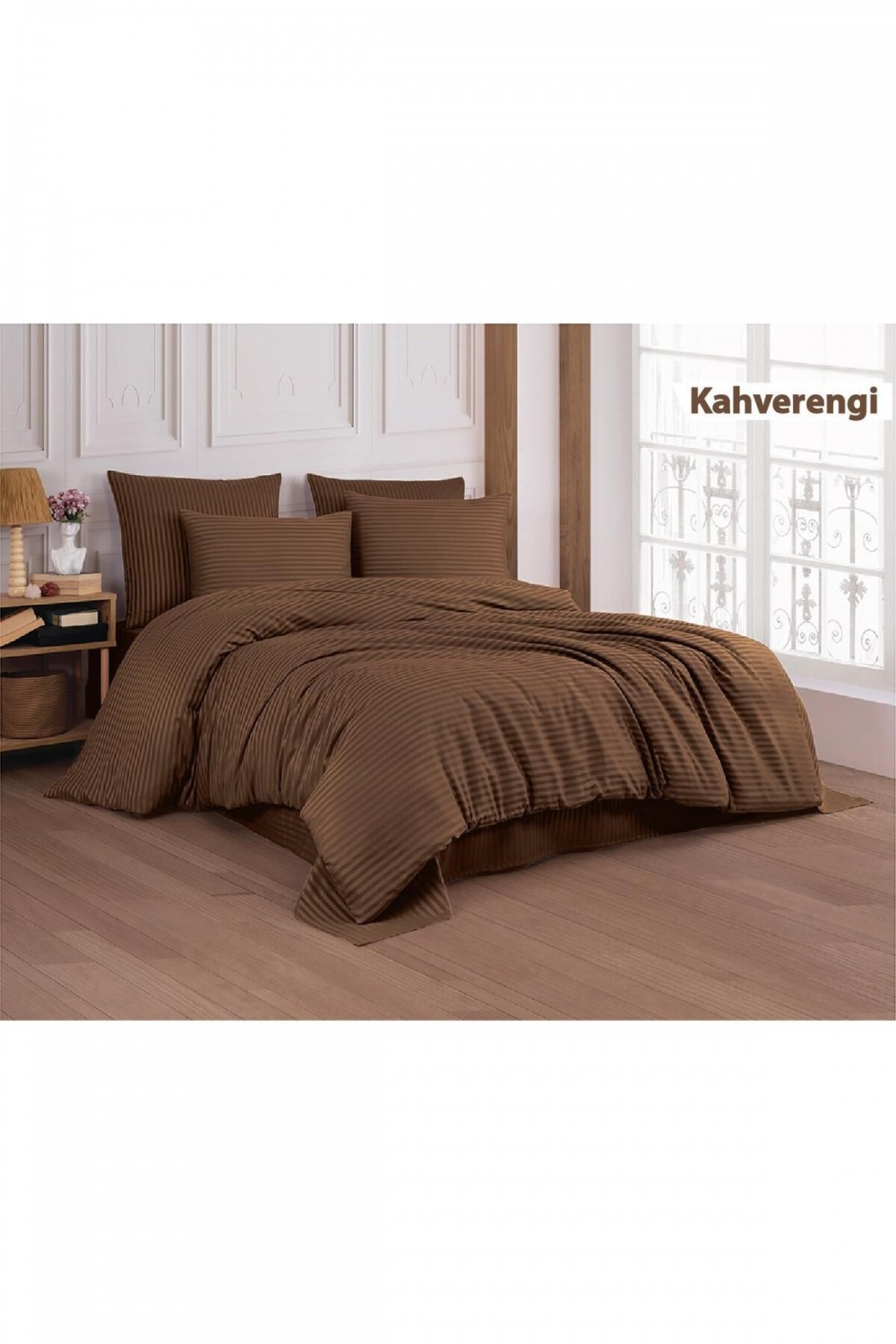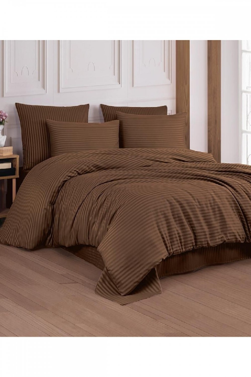 Pamuk Saten Çizgi Model Çift Kişilik Nevresim Seti - Kahverengi