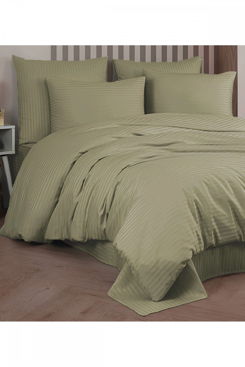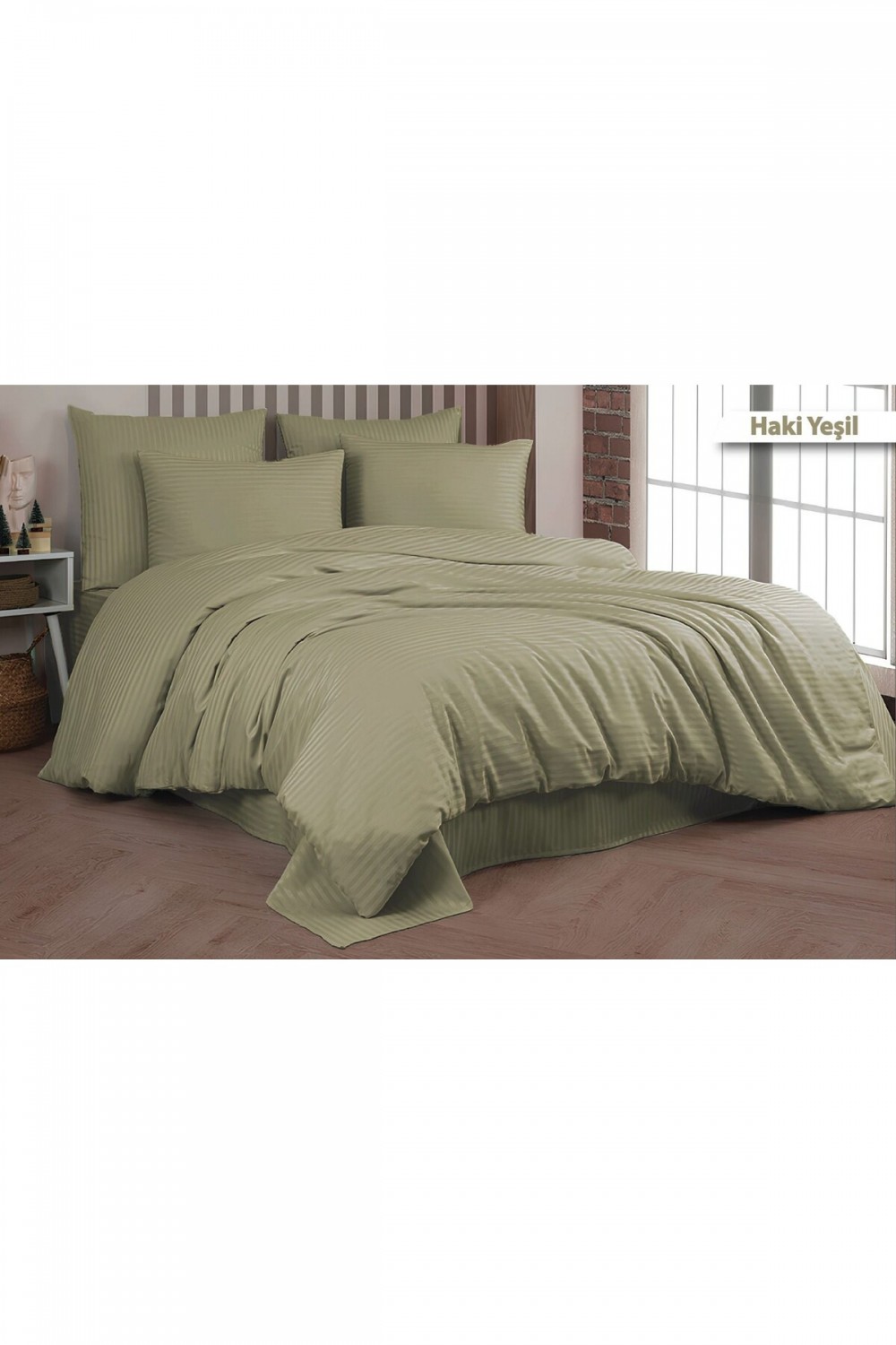 Pamuk Saten Çizgi Model Çift Kişilik Nevresim Seti - Haki