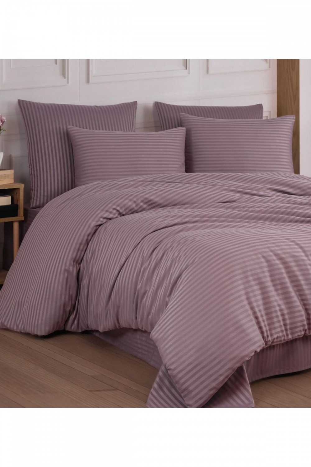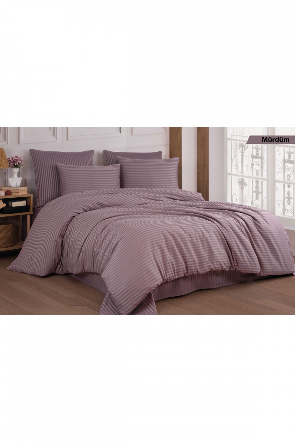 Pamuk Saten Çizgi Model Çift Kişilik Nevresim Seti - Mürdüm Mor